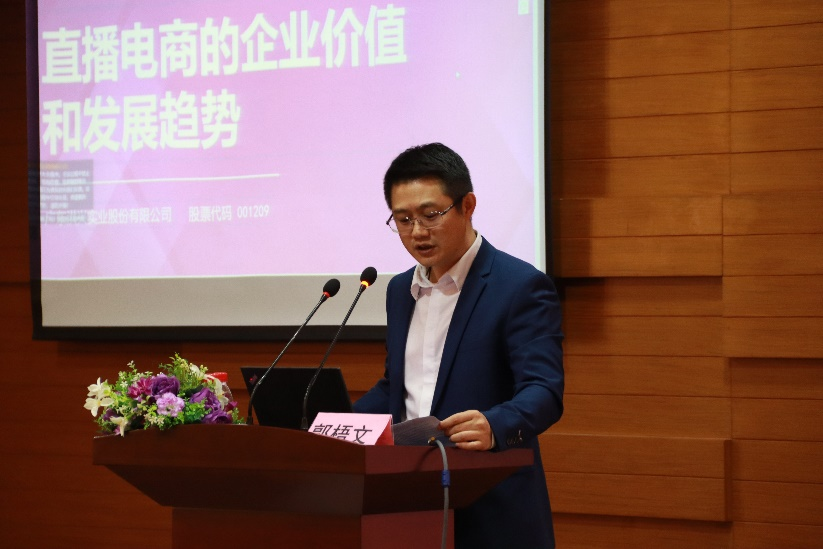 本次讲座的主讲人为广东洪信实业股份有限公司的董事长郭梧文。本次讲座分为三个部分,直播电商发展阶段,直播电商对企业的品牌价值以及直播电商未来发展趋势。