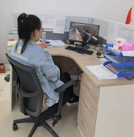 法律教研室教师认真观看相关报道,学习全国两会精神。