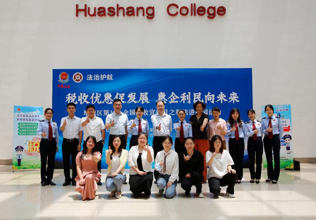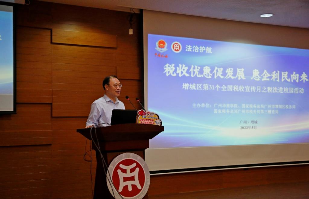 5月26日上午,税法进校园活动于威廉希尔图书馆报告厅线上线下同步举行,国家税务总局广州市增城区税务局与国家税务总局广州市税务局第三稽查局干部,华商学院副校长、会计学院院长陈美华教授,会计学院党委副书记、副院长陈洋广同志,会计学院副院长周书域,会计学院税务系主任高艳荣教授,副主任李志凤以及会计学院师生代表参加了活动。