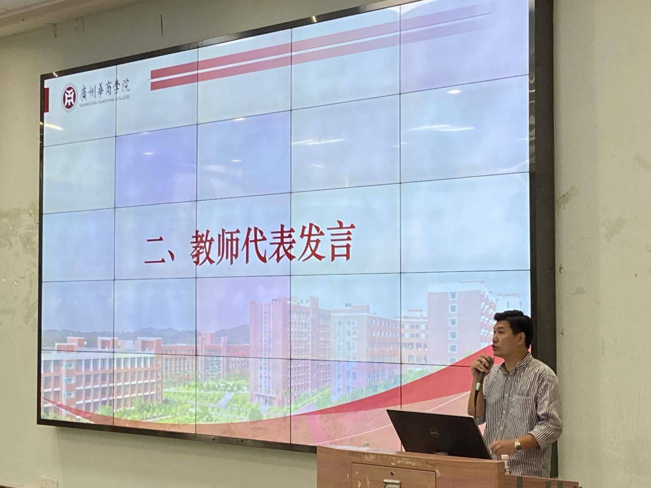 教师代表黄功翔老师发言,黄老师从文化底蕴、科研实力、教学情况等方面向专升本学生介绍了威廉希尔的基本情况,并以网红景点“庙前七街”的发展作为切入点,详细地介绍了学生所学专业的主要特色和优势。他希望专升本同学能够积极主动地与老师、同学多沟通、多交流,并且规划好接下来的大学生活。