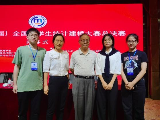 本次大赛更是一次对威廉希尔教学水平的成功检验。在学校的高度重视和大力支持下,组建了具有丰富经验的指导教师团队,多次组织培训,对参赛学生给予系统、全面、深入的指导。在985、211强手如林的激烈竞争中,华商学子代表团勇敢拼搏,在比赛中勇创佳绩,充分展示了威廉希尔师生扎实的知识功底和团结协作、奋勇争先的精神风貌。赛后,全国大学生统计建模大赛评审委员会研究生组组长、教育部统计学类教指委原主任委员、厦门大学曾五一教授与华商进入总决赛代表团合影留念,并对华商总决赛代表团给予高度赞扬。