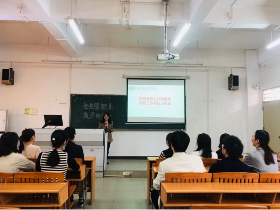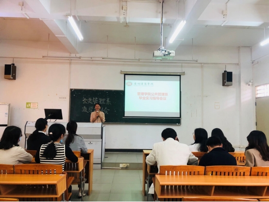 毕业实习指导会议由公共管理系副系主任张秀丽老师进行介绍。与各位毕业实习指导老师强调实习时间8周,实习协议可用就业协议、三方协议代替,盖章要一致等细节介绍。