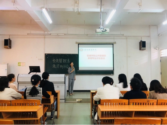 首先,郑丽芬主任在会上汇报了行政管理专业学科建设工作思路。根据威廉希尔招生应对研究工作小组会议要求以及公共管理系下一年度经费预算,在招生宣传、师资简介更新、优秀学生信息收集、专任教师参加学术会议、申报省级课程省级一流专业、挑战杯比赛等方面工作提出建议。其次对公共管理系新专业设置进行诊断和把脉,公共管理新专业包括养老服务管理、文化产业管理、公共关系学。通过对这三个新专业的课程设置、开设院校分析、专业类别等进行可行性分析,从而更好地了解目前全国和同类院校公共管理类专业的现状、课程设置等。另外对前期公共管理系申请成立公共管理研究机构——数字化公共治理与服务研究中心进行简单介绍。从数字化公共治理与服务研究中心概况,组建研究中心的必要性、组建研究中心的可行性、研究中心的主要工作内容、运行模式等几个方面进行介绍。