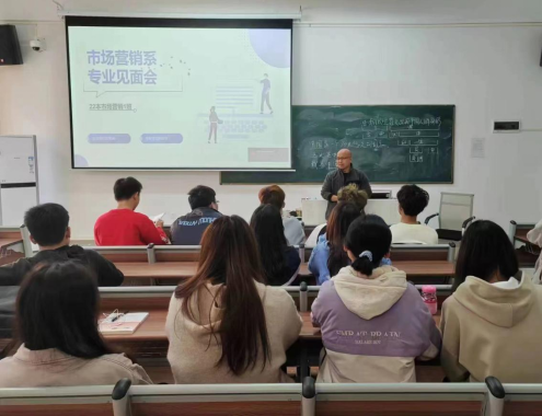 市场学系专业见面会由市场学系副主任马航通主持,专任教师邹佩、2022级市场营销专业学生及2022级旅游管理专业学生参加。