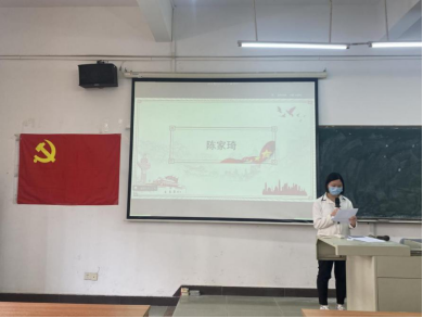 陈家琦同志上台宣读《转正申请书》,向党组织汇报自己在预备期内的成长与收获,展现出了她坚定不移跟党走的决心,并郑重地提出转正申请。