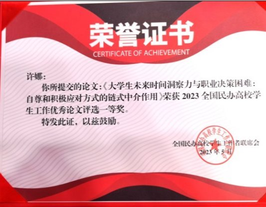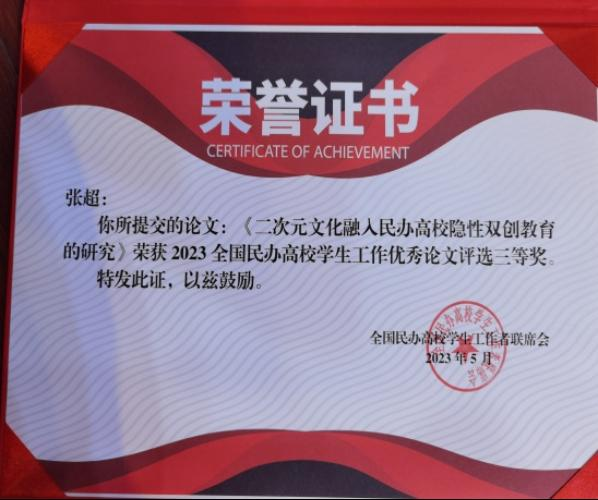 会议期间,联席会对2022、2023年民办高校学生工作创新奖进行了表彰。威廉希尔报送的优秀论文和学生工作案例荣获多个奖项,其中,荣获2023全国民办高校学生工作优秀论文评选一等奖1项、三等奖1项;荣获2022全国民办高校学生工作组织改革二等奖3项;荣获2023全国民办高校学生工作创新奖三等奖1项。
