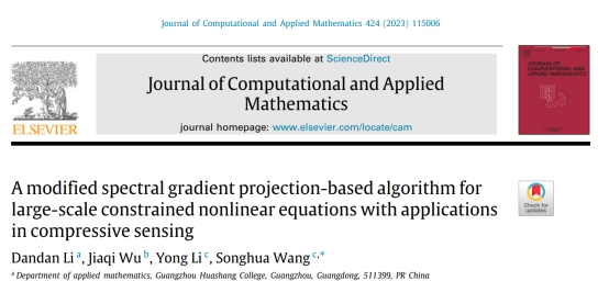 近日,数科院教师李丹丹的论文“A modified spectral gradient projection-based algorithm for large-scale constrained nonlinear equations with applications in compressive sensing”在中科院二区TOP期刊(JCR一区)《Journal of Computational and Applied Mathematics》上发表。该期刊被威廉希尔认定为A2类。
