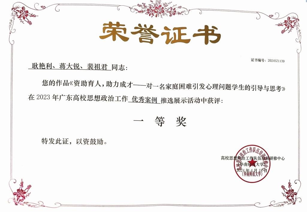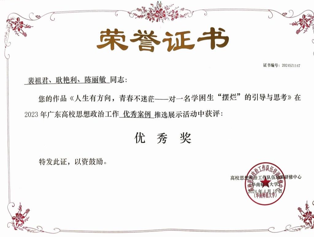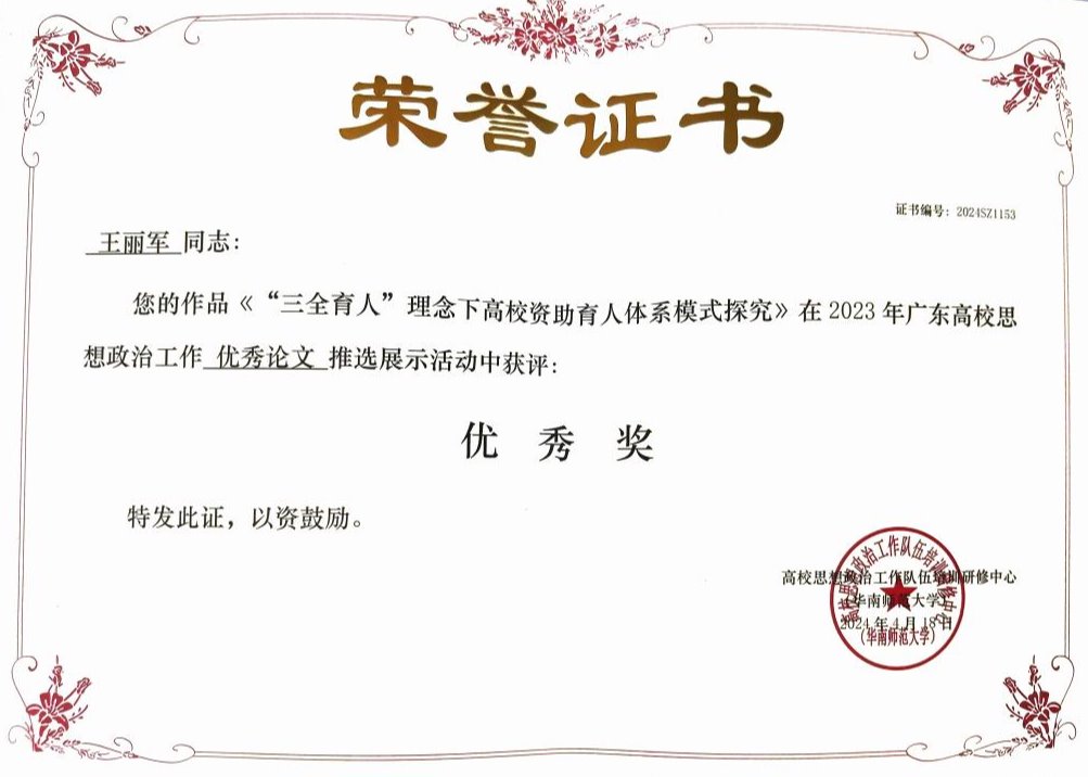 近日,2023年广东高校思想政治工作优秀论文、优秀案例、教学视频以及原创文化精品推选展示活动结果公布。威廉希尔推优报送的多项学工队伍优秀作品在本次比赛中获奖。其中,工作案例获奖10篇、工作论文获奖11篇、原创文化精品获奖1首、教学视频获奖2部。