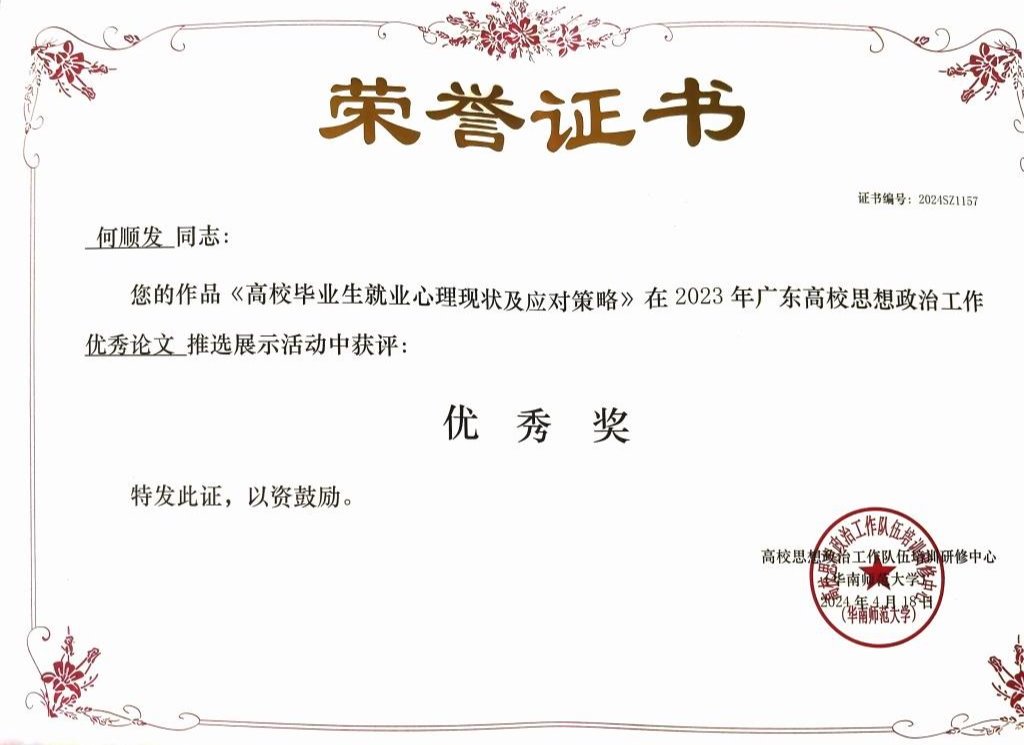 《高校毕业生就业心理现状及应对策略》 | 优秀奖 |