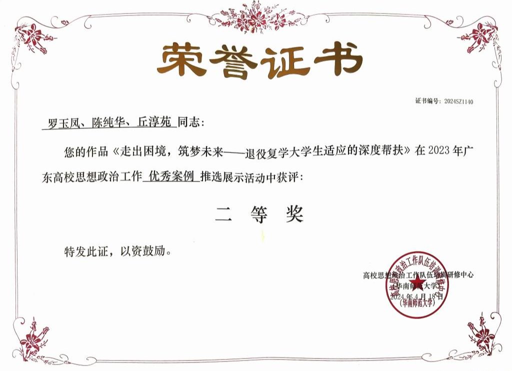 《走出困境,筑梦未来——退役复学大学生适应的深度帮扶》 | 二等奖 |
