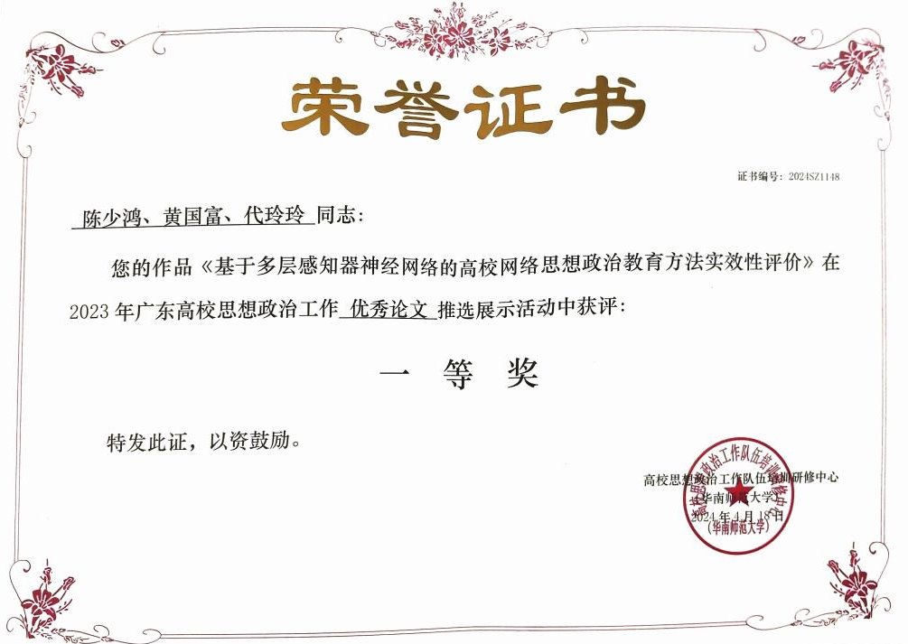 《基于多层感知器神经网络的高校网络思想政治教育方法实效性评价》 | 一等奖 |