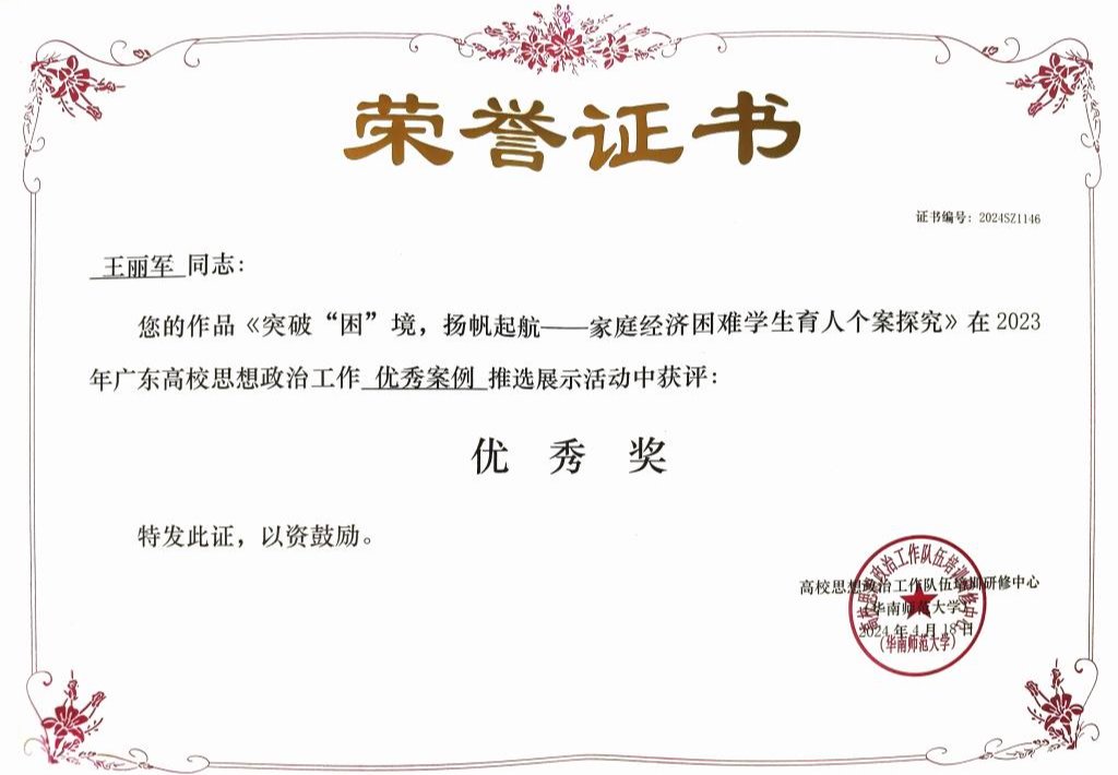 王丽军 | 《突破“困”境,扬帆起航——家庭经济困难学生育人个案探究》 | 优秀奖 |