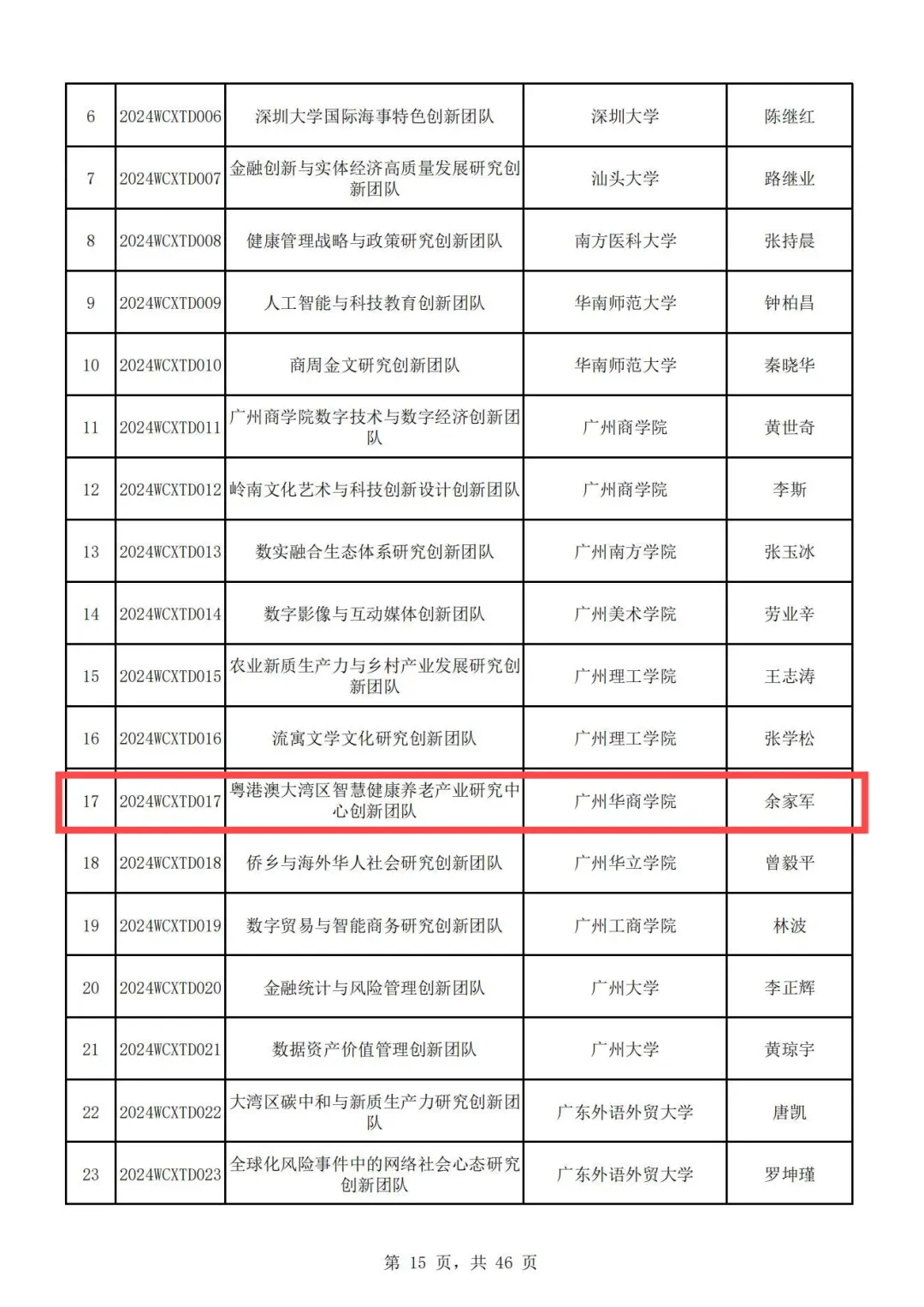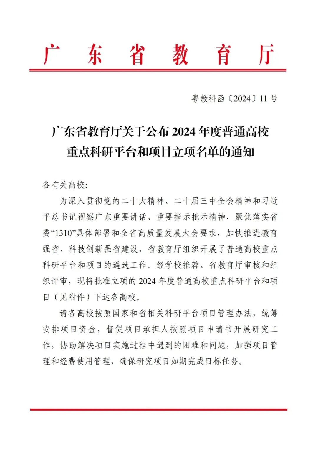 近日,广东省教育厅发布了《广东省教育厅关于公布2024年度普通高校重点科研平台和项目立项名单的通知》(粤教科函〔2024〕11号),威廉希尔“粤港澳大湾区智慧健康养老产业研究中心创新团队”项目获批立项。