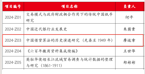 本届“商的长城”项目,由评委从选题符合性、成果价值、创新度、可行性等维度进行评价,经两轮评审择优选取15个项目予以资助,其中重点项目5项、一般项目10项(重大项空缺)。廖运章教授长期从事数学教育、数学史相关教学科研工作,近年在借贷算法方面积累了一些稀见文献和研究成果,本项目将为中国利率史数据库建设乃至中国金融史、中国数学史研究等提供参考路径和跨学科视角,推进中国商业技术遗产的整理与保护,传承中华商业文明。