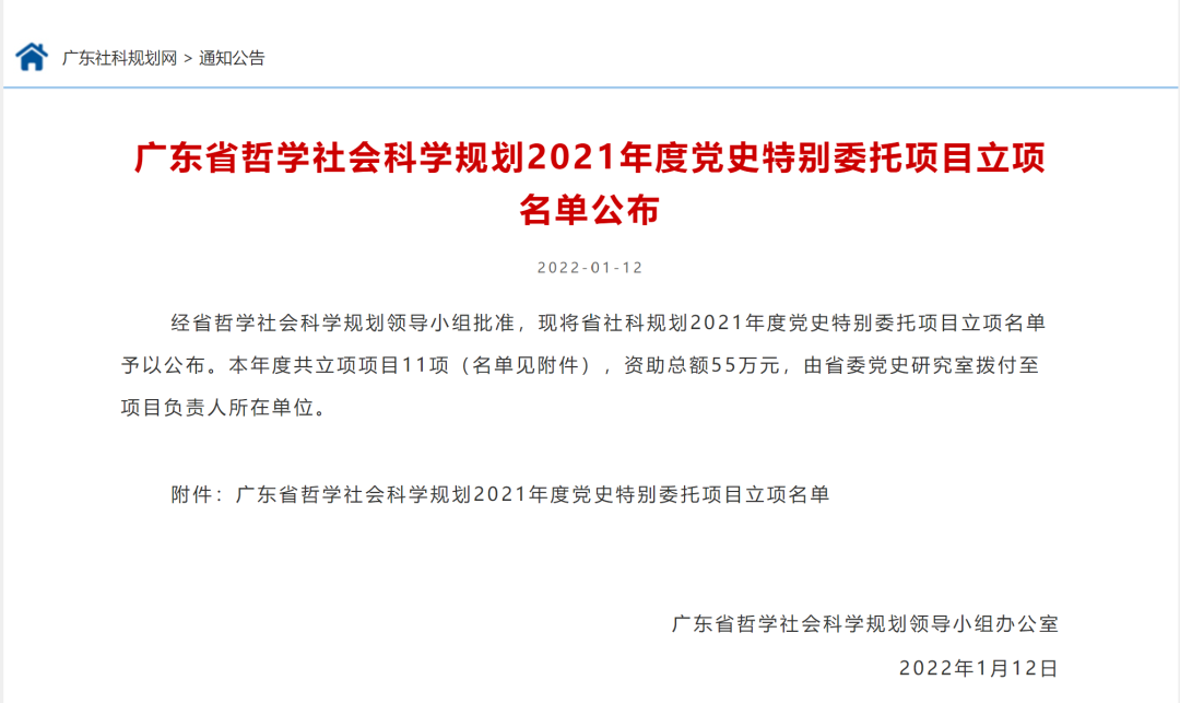 广东省哲学社会科学规划2021年度党史特别委托项目立项名单公布。