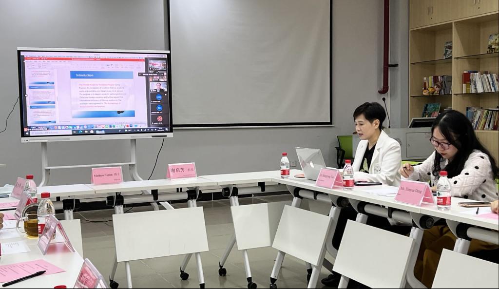 项目主持人蔡尚容博士以中英双语对项目基本信息、著作简介、翻译和编辑方案、宣传推广方案等进行汇报。开题答辩会重点围绕开题报告中各项任务完成方案,尤其是翻译质量的提升和后期宣传推广两个方面来开展,最后答辩组专家对项目团队提出指导性建议,包括,项目专业术语的国际通用性、词汇翻译的准确性、用词的固定性、语句的流畅性;专有名词的结构可以图片的方式呈现,以便读者理解;建议项目主持人学习中国古建筑知识,提高这方面的专业素养,降低跨界翻译的难度。