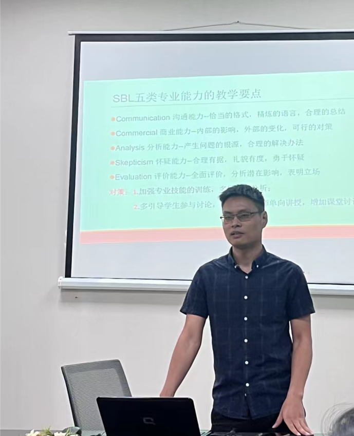 叶国安老师介绍了StrategicBusinessLeadership课程的教学要点和课程内容,同与会教师交流了在考试中学生的常见问题,并且重点强调了激发学生学习SBL课程的兴趣是非常重要的。
