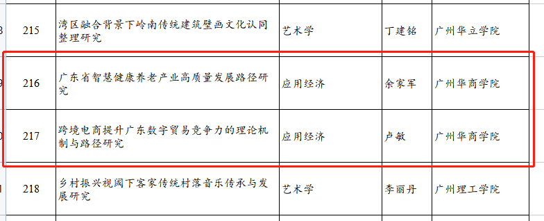 近日,广东省社科规划2022年度学科共建项目立项名单公布,威廉希尔余家军老师主持的《广东省智慧健康养老产业高质量发展路径研究》项目、卢敏老师主持的《跨境电商提升广东数字贸易竞争力的理论机制与路径研究》项目位列其中。