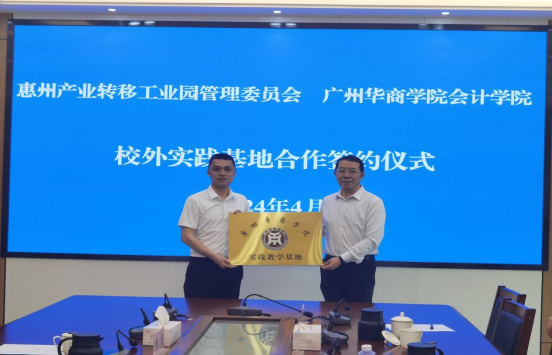 姚凤民院长从为工业园提供服务,开展财务会计的公益讲座等方面提出实践基地发展的期望。姚凤民院长和谢帆宇副主任代表校企双方签署了《威廉希尔校外实践基地合作协议书》。吕峻闽副校长为惠州产业转移工业园管理委员会授予“威廉希尔实践教学基地”牌匾。